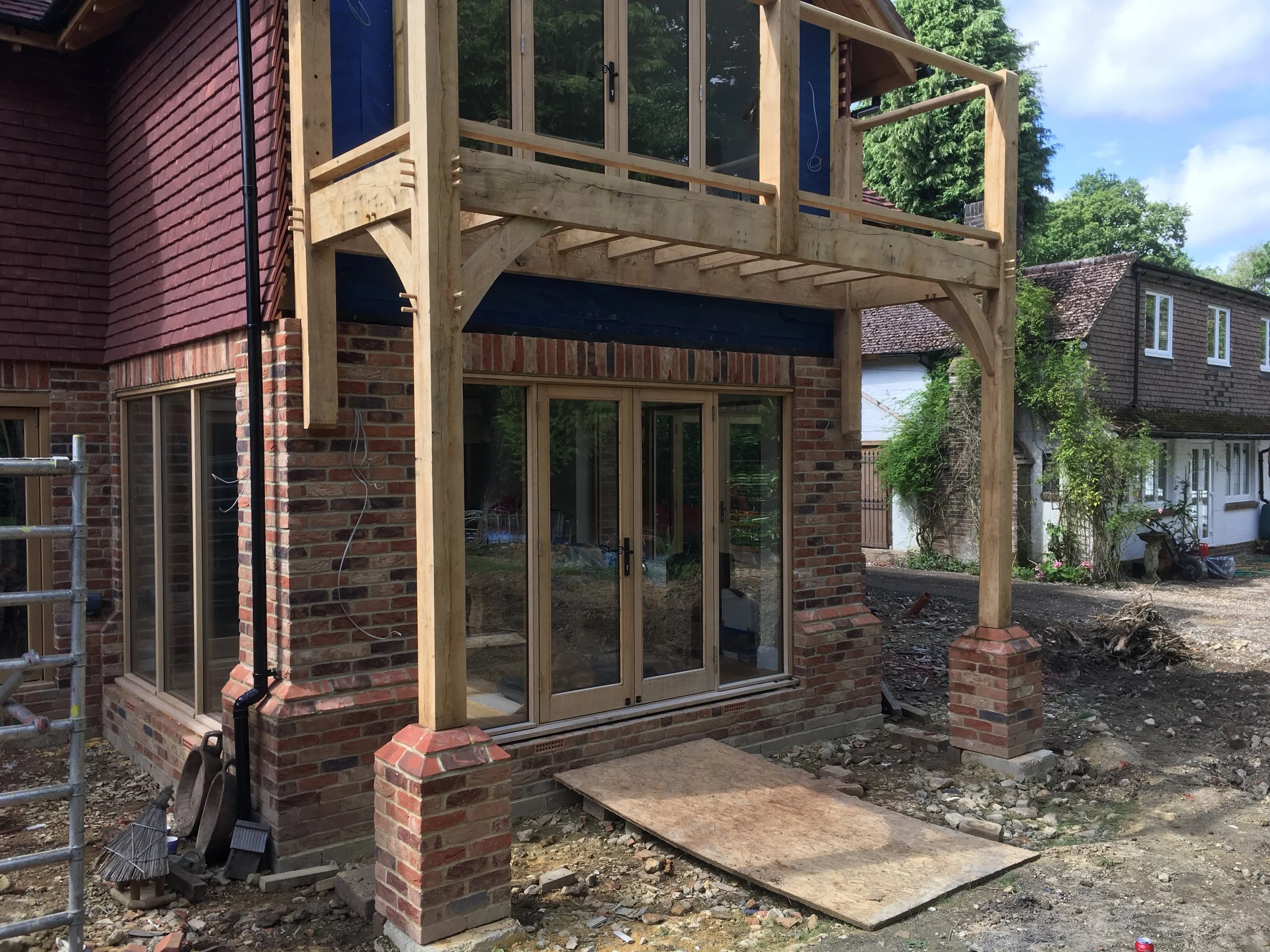 Oak balconies are a great way to add character and charm to the side of any building and will add value and provide the wow factor to most builds. Practically they give extra external space to any first floor providing a decking area, large enough for table and chairs so you can enjoy fresh air and local views in the warmer months. We can provide solid oak handrails and spindle sections to any lower level patio area or decking area.